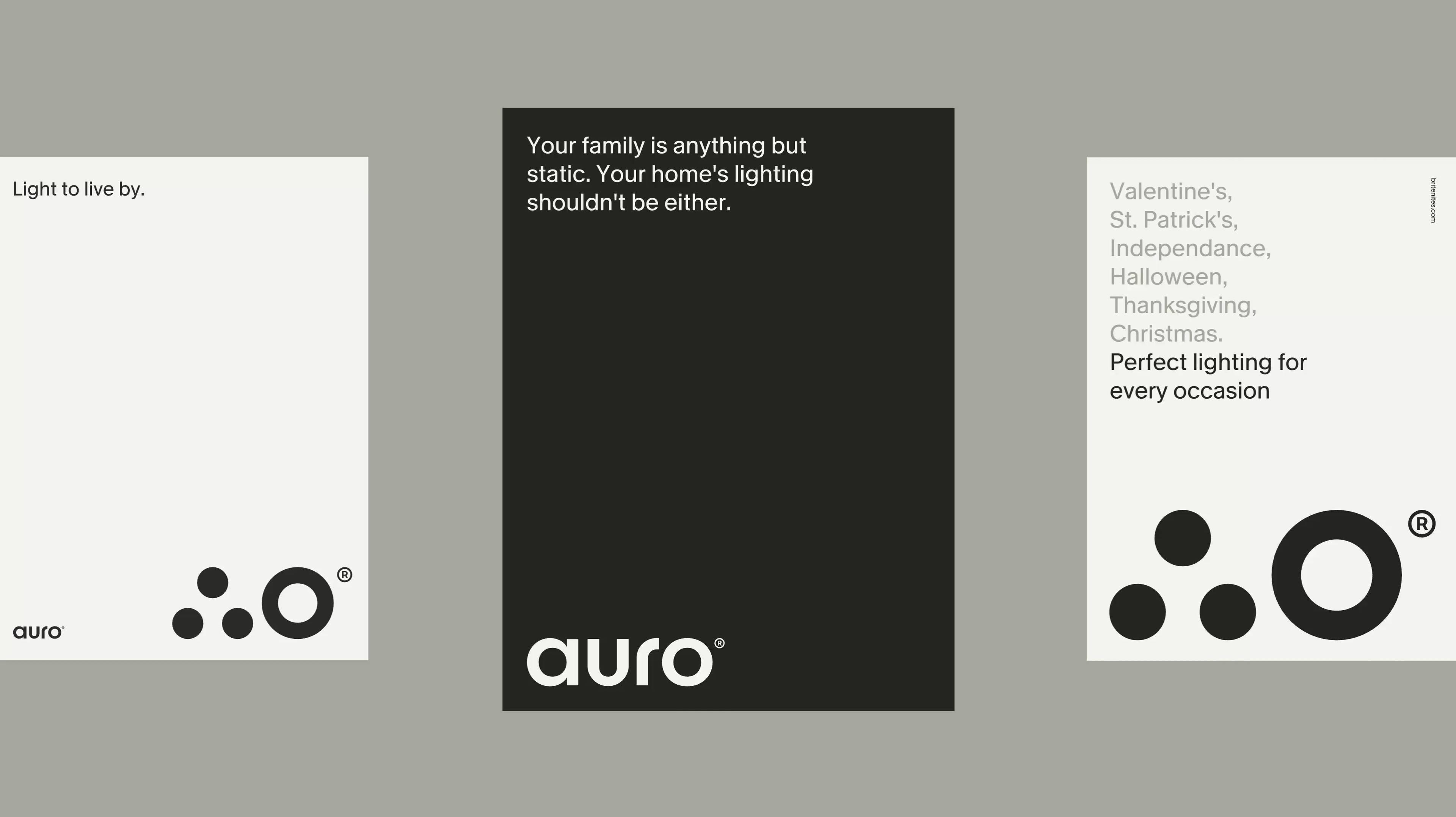 As part of a larger engagement with Brite Nites, Auro reimagines what it means to “see your home in a different light.” We developed a permanent lighting brand and interface for an emerging market. Every element from naming to art direction was designed to make Auro a lasting and invited presence in the spaces people call home.